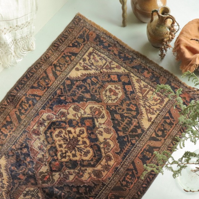 こちらはアドラスカン地域で作られた素敵な一枚 少しクラシカルなデザインが特徴的なこちら。 毛足に光沢があるので角度によって 霞みががって見えたり、柄がはっきり見えたり、枯れたような質感に見えたり… ちょっと不思議な見え方をします(インスタグラム内の動画で詳しく見えます) そんな質感がよりヴィンテージ感強く、味のある風合いとなっていて素敵です。 ・サイズ: 90×132 cm ・年代:1960年代(60years old) ・産地: アフガニスタン Adraskand ・ウール100% ※自然光と均一な光の入る部屋で撮影しています。 ※こちらインスタグラムに動画もアップしております。 ぜひ併せてみてみてください! https://www.instagram.com/p/C55l9L8PAsw/?img_index=1 <インスタグラム割引適用あり> こちらインスタのDMよりご購入いただければ、割引価格が適用となります。 BASE価格より、最大6.5%offとなります。 気になる方はDMにてお問い合わせくださいませ♩ ・注意事項: ・商品写真はできる限り実物の色に近づけるよう加工しておりますが、お客様のお使いのモニター設定、お部屋の照明等により実際の商品と色味が異なる場合がございます。 ・当店で取り扱っているものはヴィンテージ品のため、経年変化による擦れや歪み、色の変化などが見られる商品もございます。 また羊毛製品につきましては、羊毛特有の匂いを感じるものもございます(使用されていくうちに軽減されます) それらをご理解・ご了承いただいた上でご購入をお願いいたします。 ・現地で洗浄済みのラグを販売しておりますが、稀に内部の繊維くずや埃などが取りきれていない商品もございます。(おおよそのラグは問題ございません)気になる方は到着後に掃除機がけまたは、クリーニングに出されることもご検討ください。