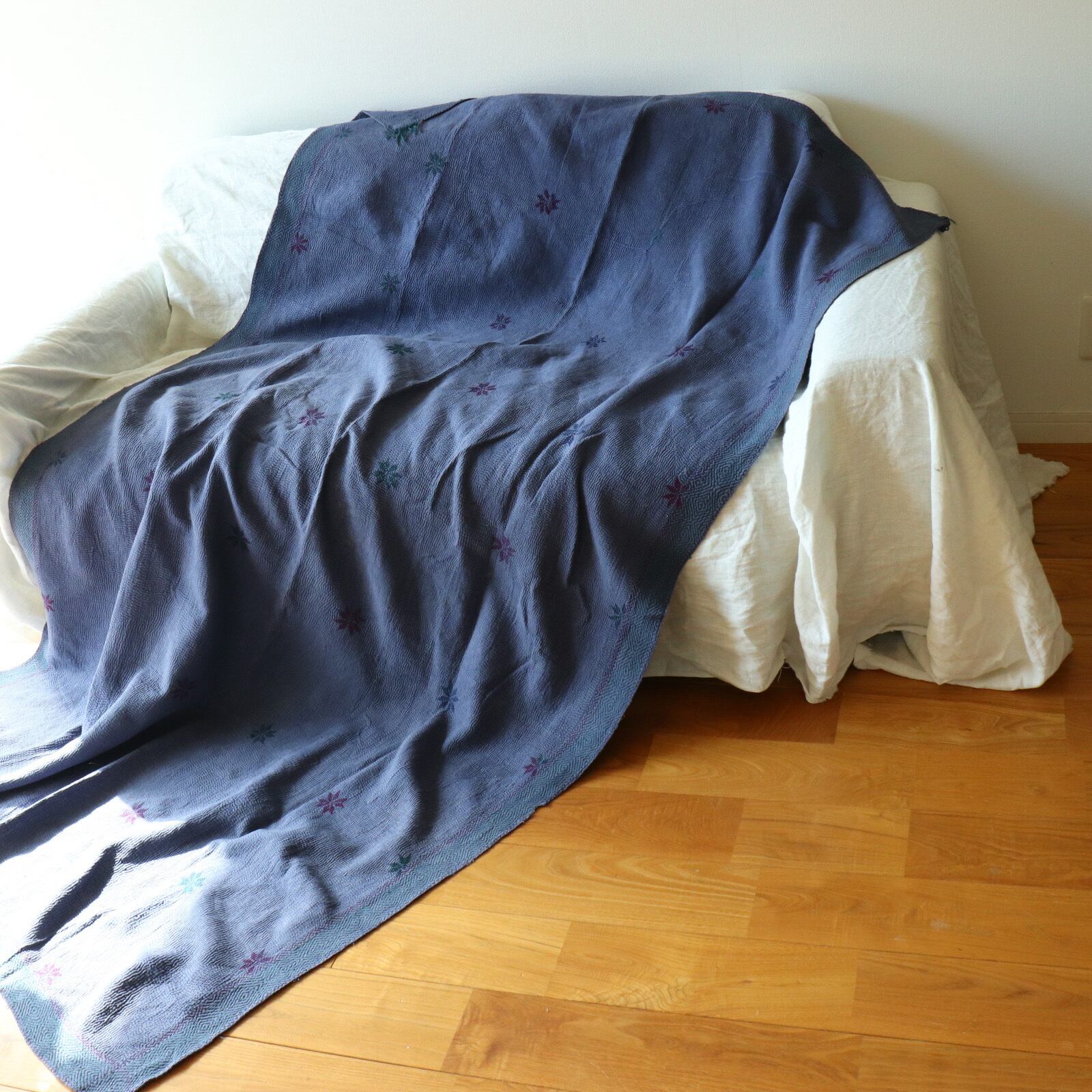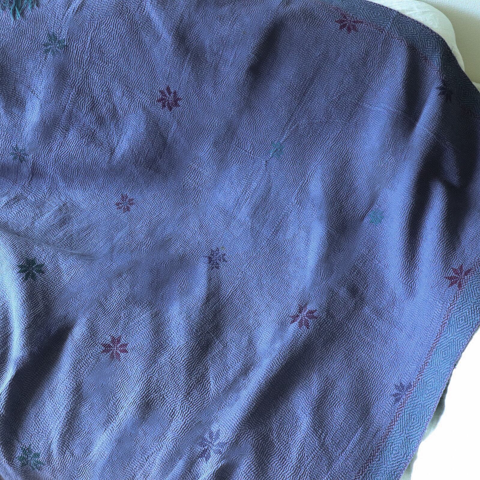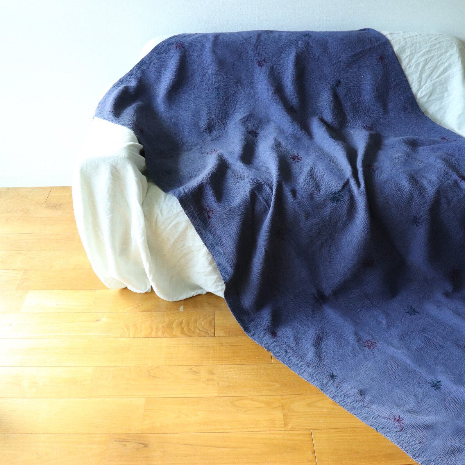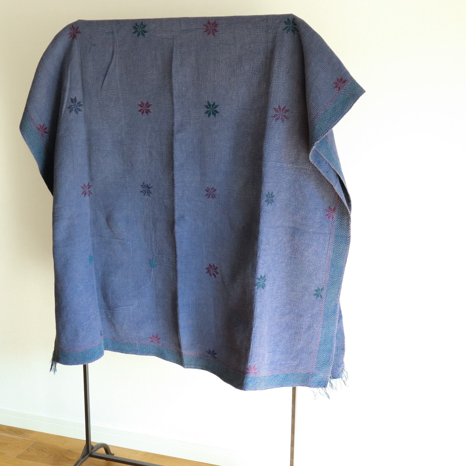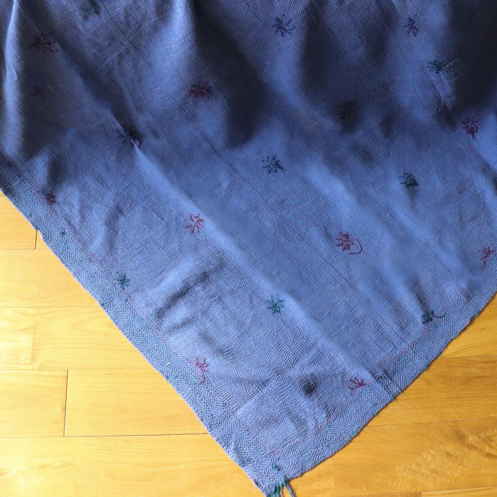 手刺繍を施し、マルチカバーとして生まれ変わったものです。