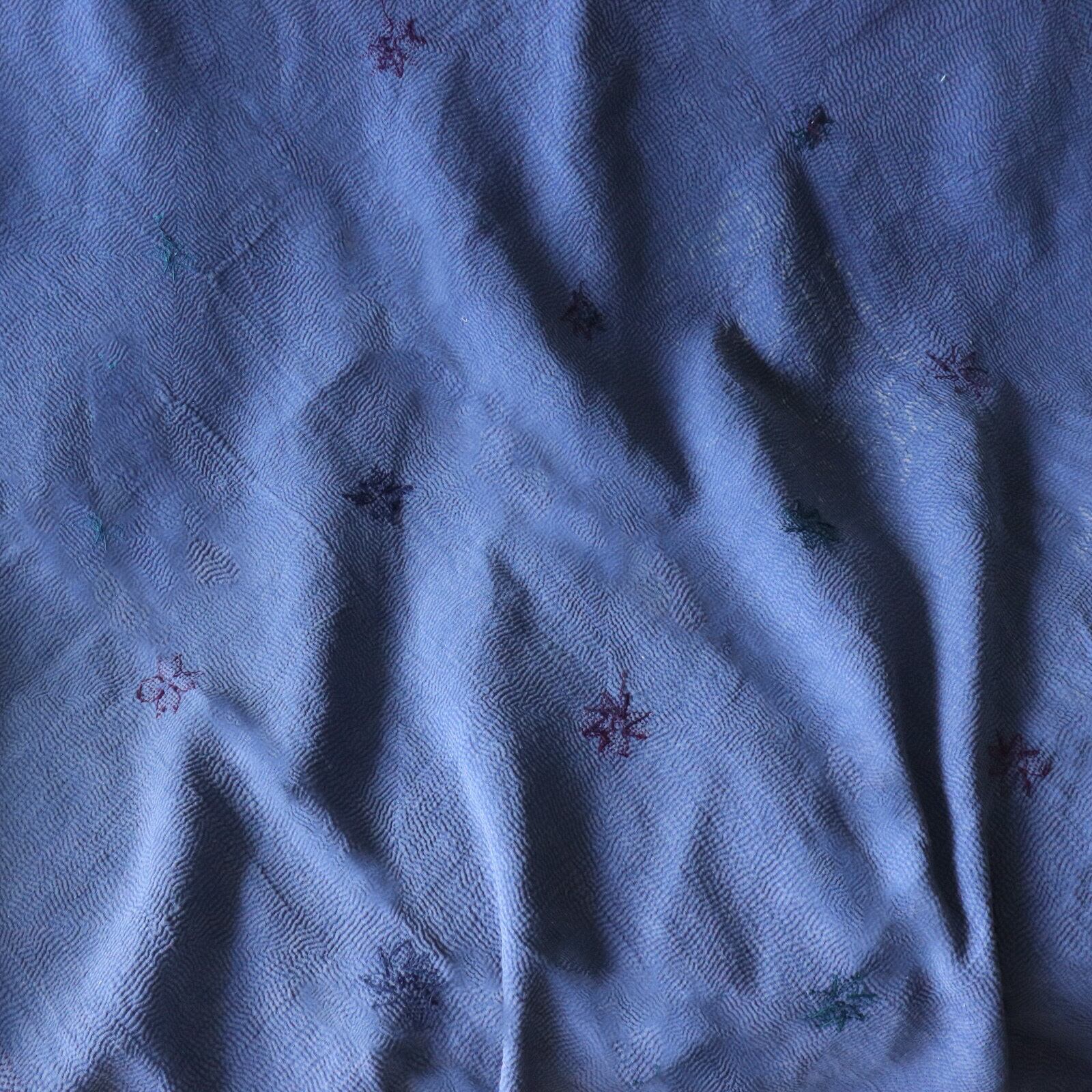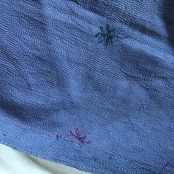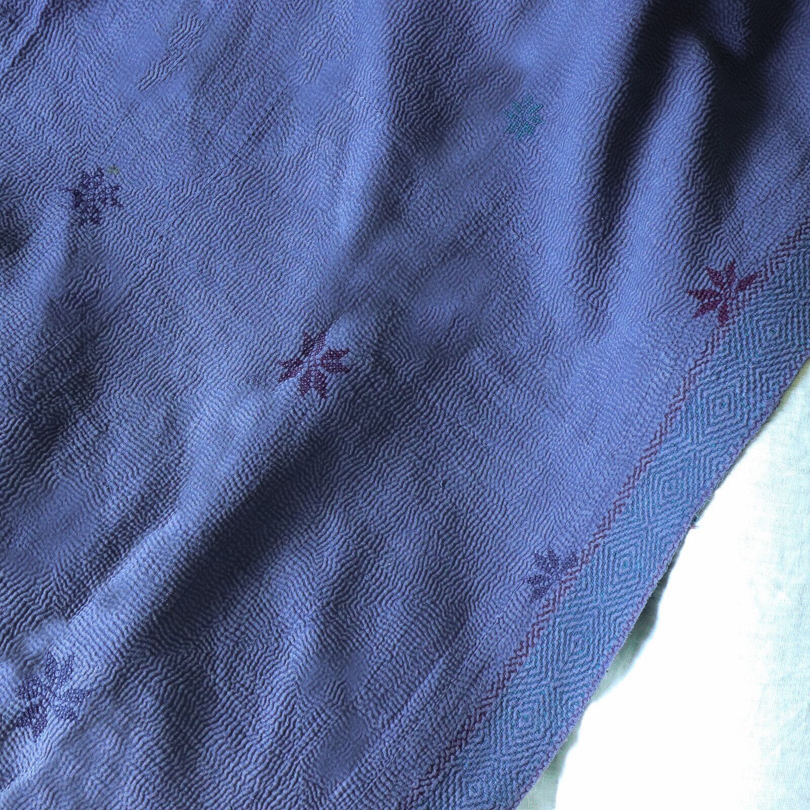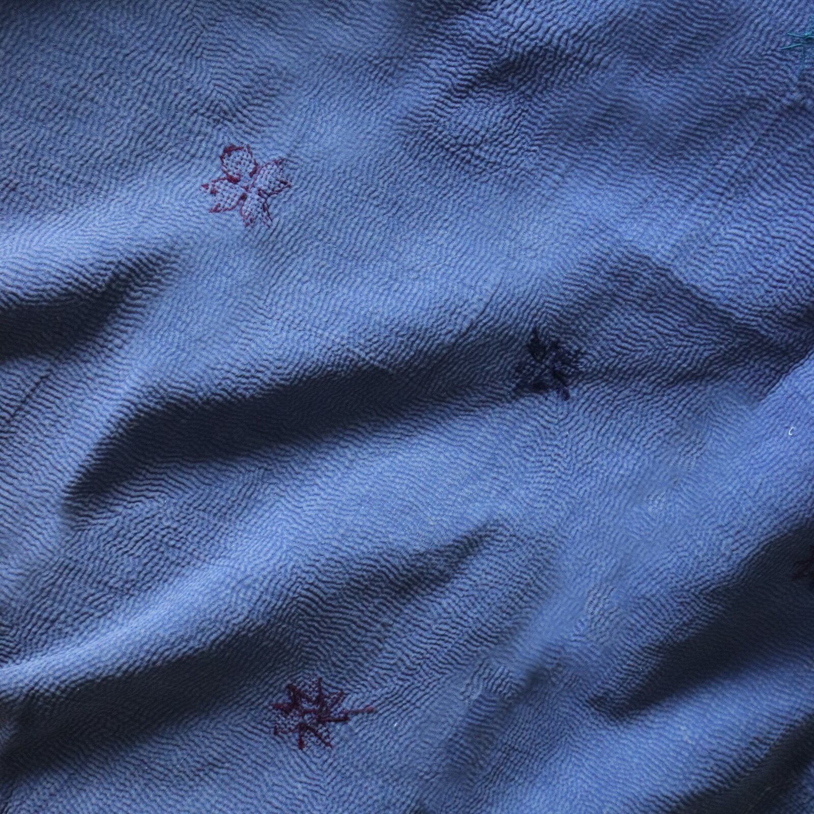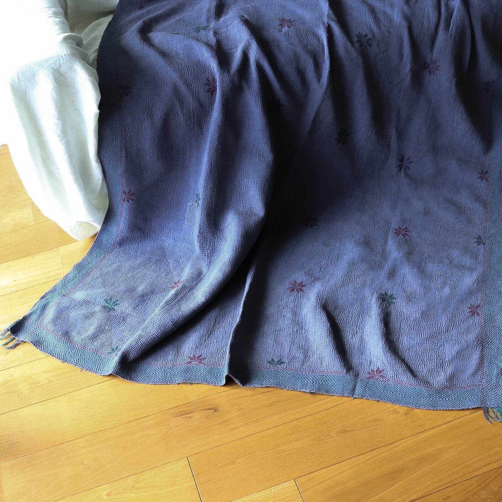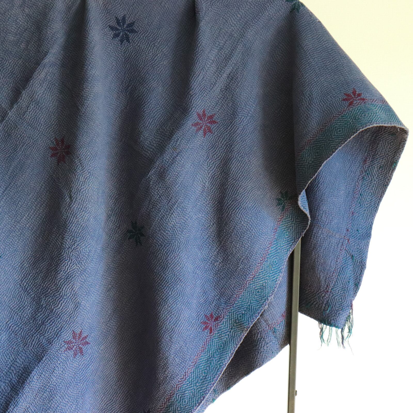 手刺繍を施し、マルチカバーとして生まれ変わったものです。