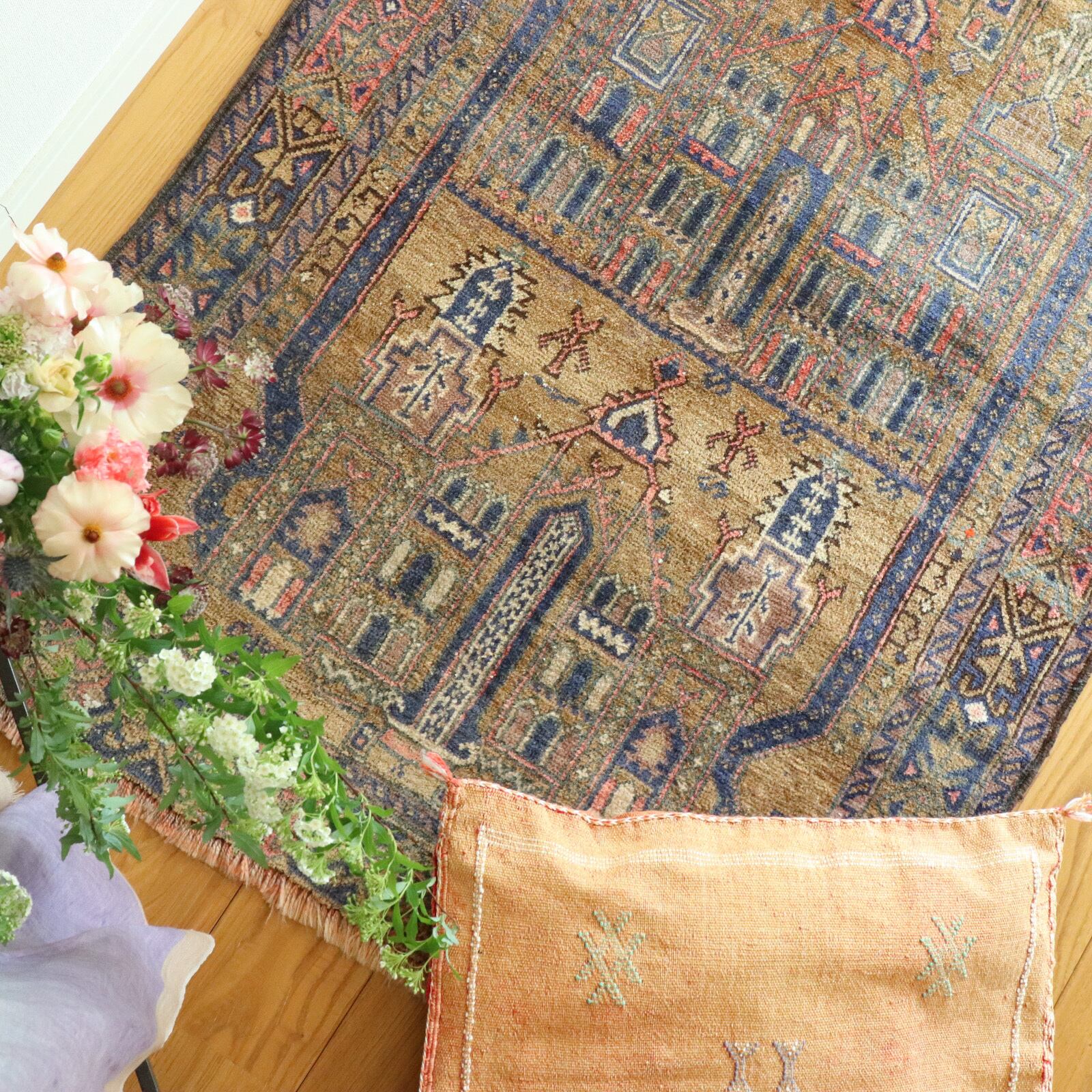 castle pattern とのことで、たまに見つかるお城モチーフのラグです。