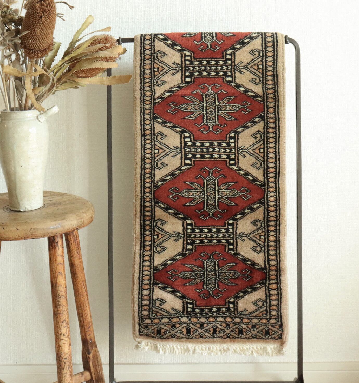 少し赤みがかったブラウン×ベージュを基調としたパキスタンラグです。