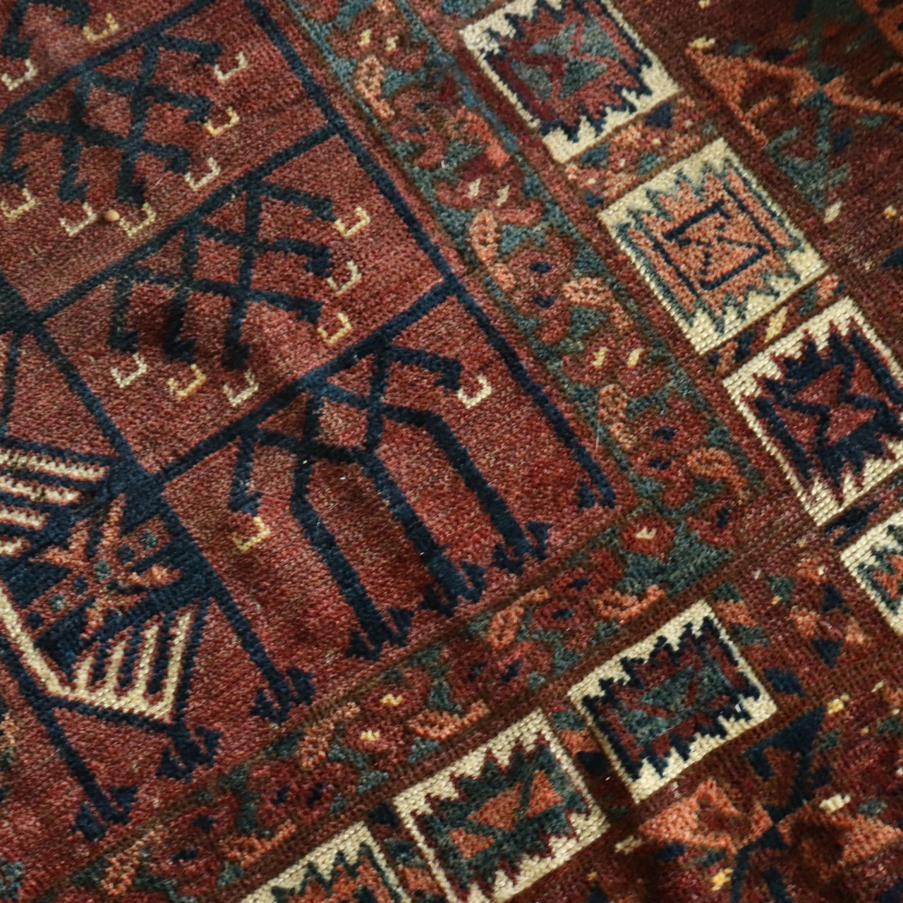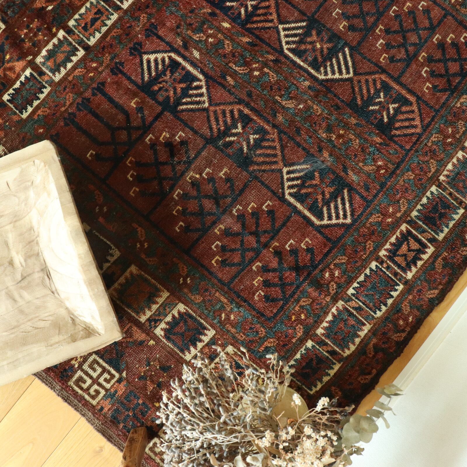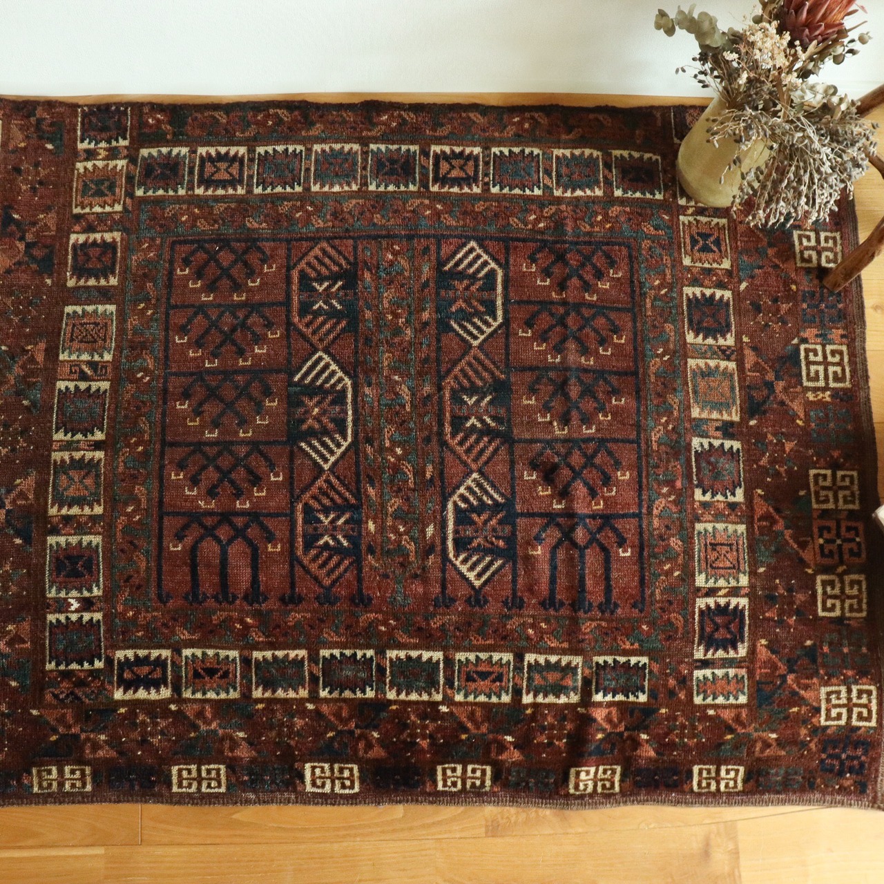 こちらはトルクメン族のとても古いアンティークラグ。