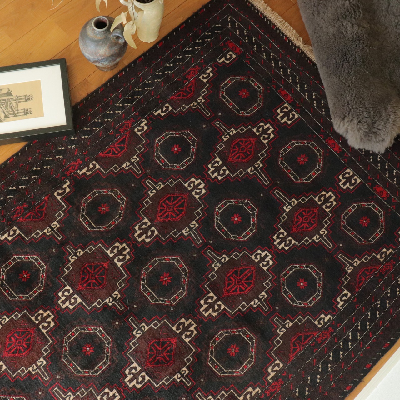 深い色合いが魅力的なこちらのラグ。