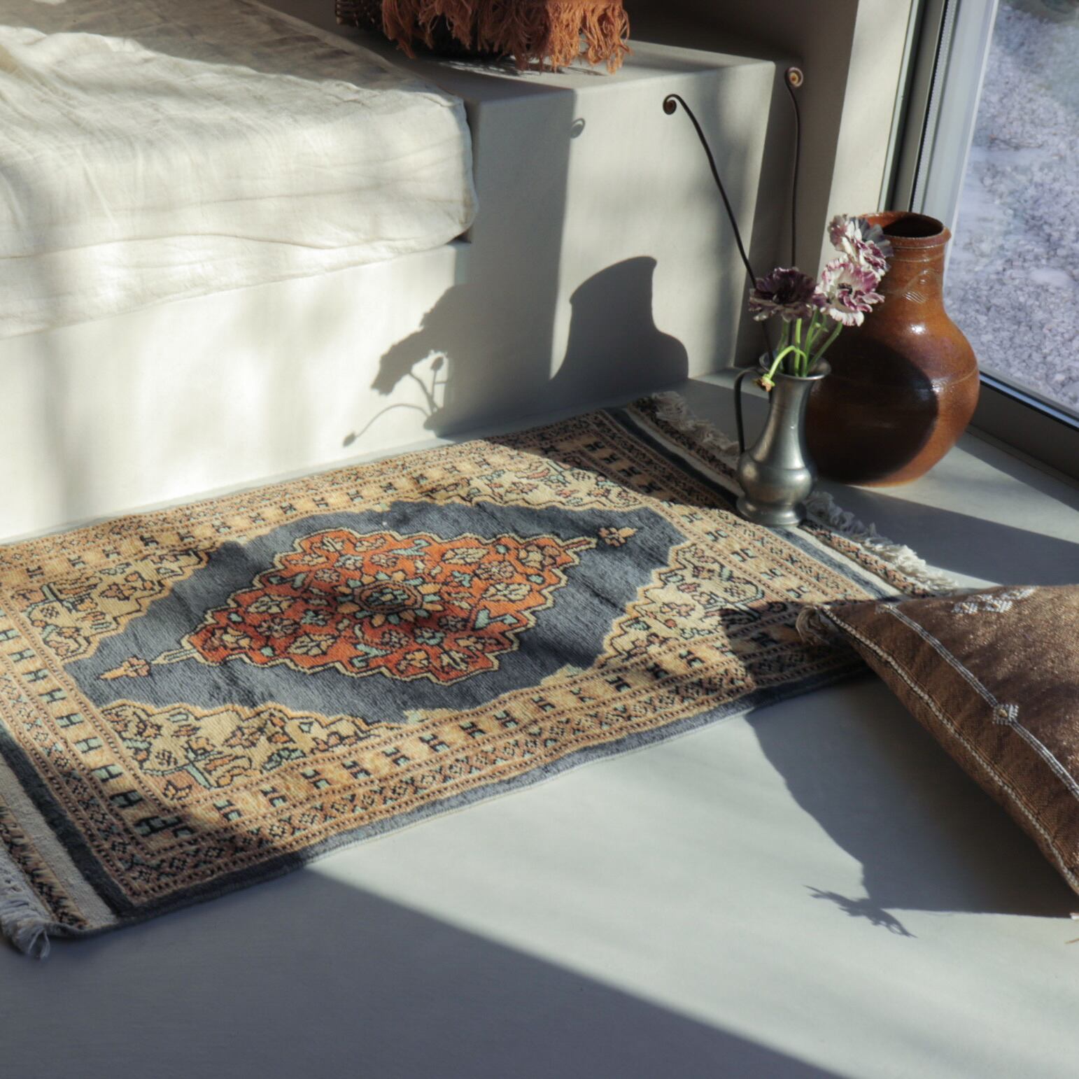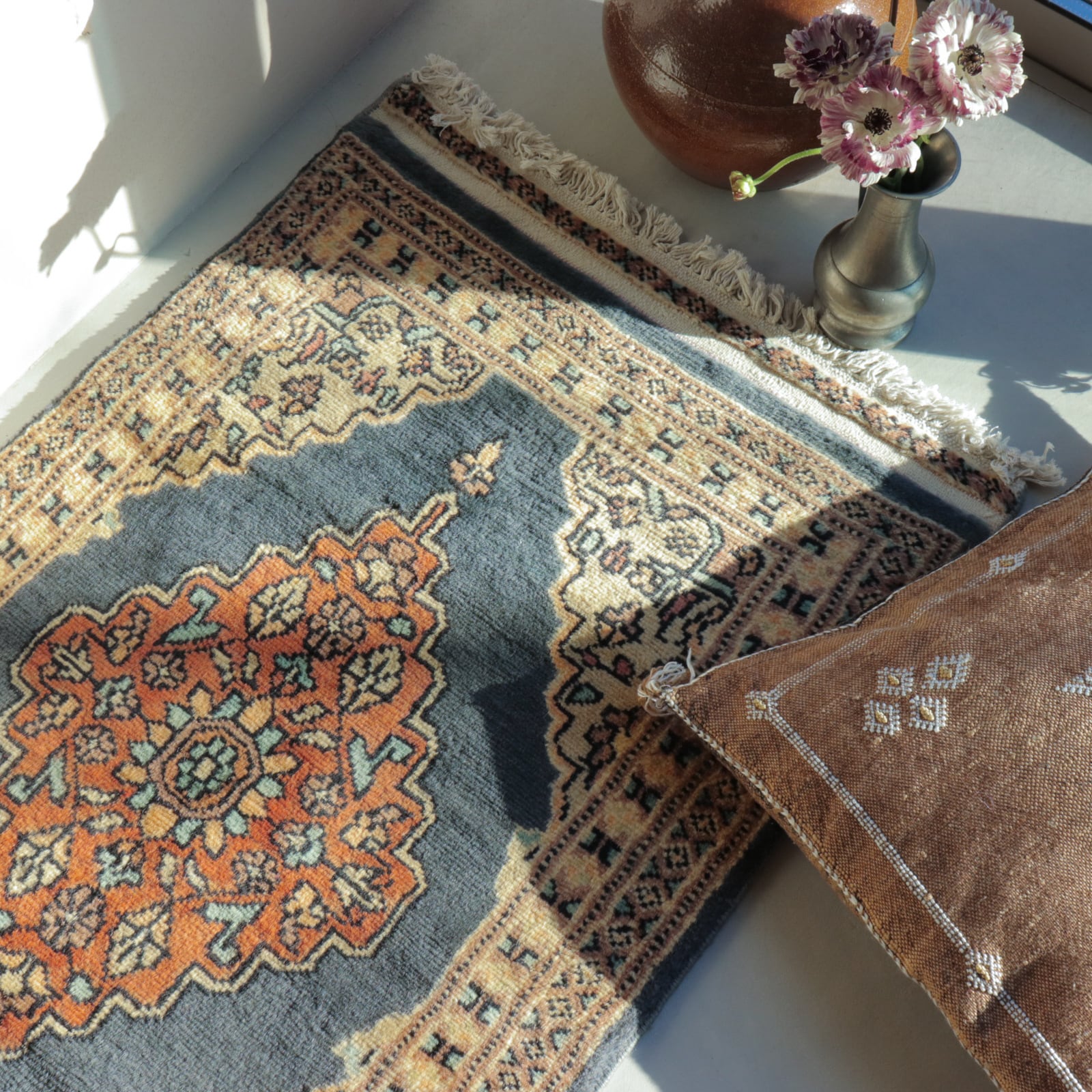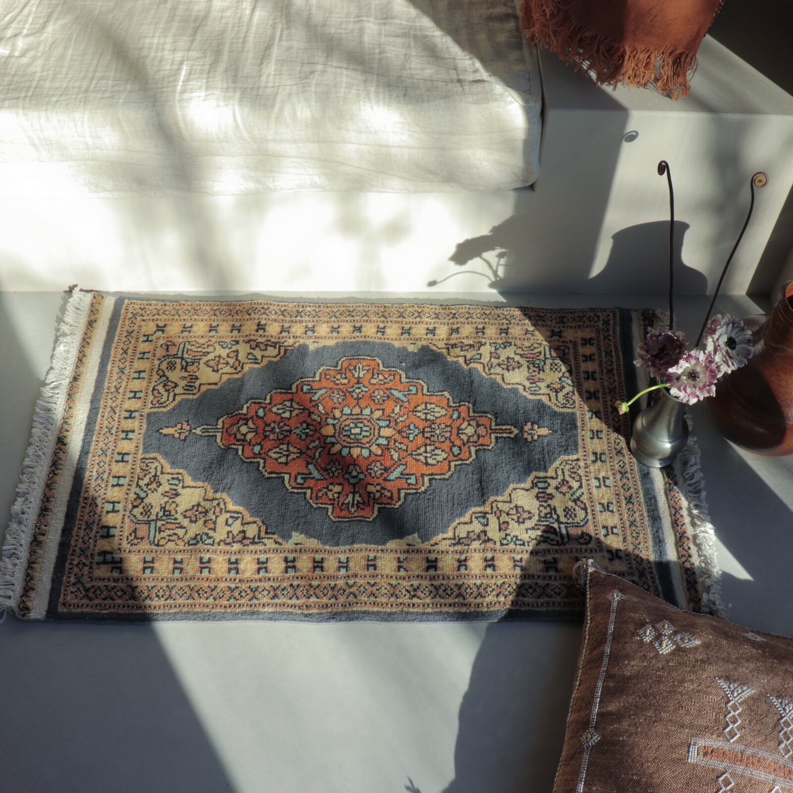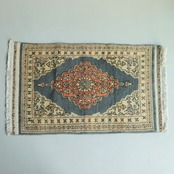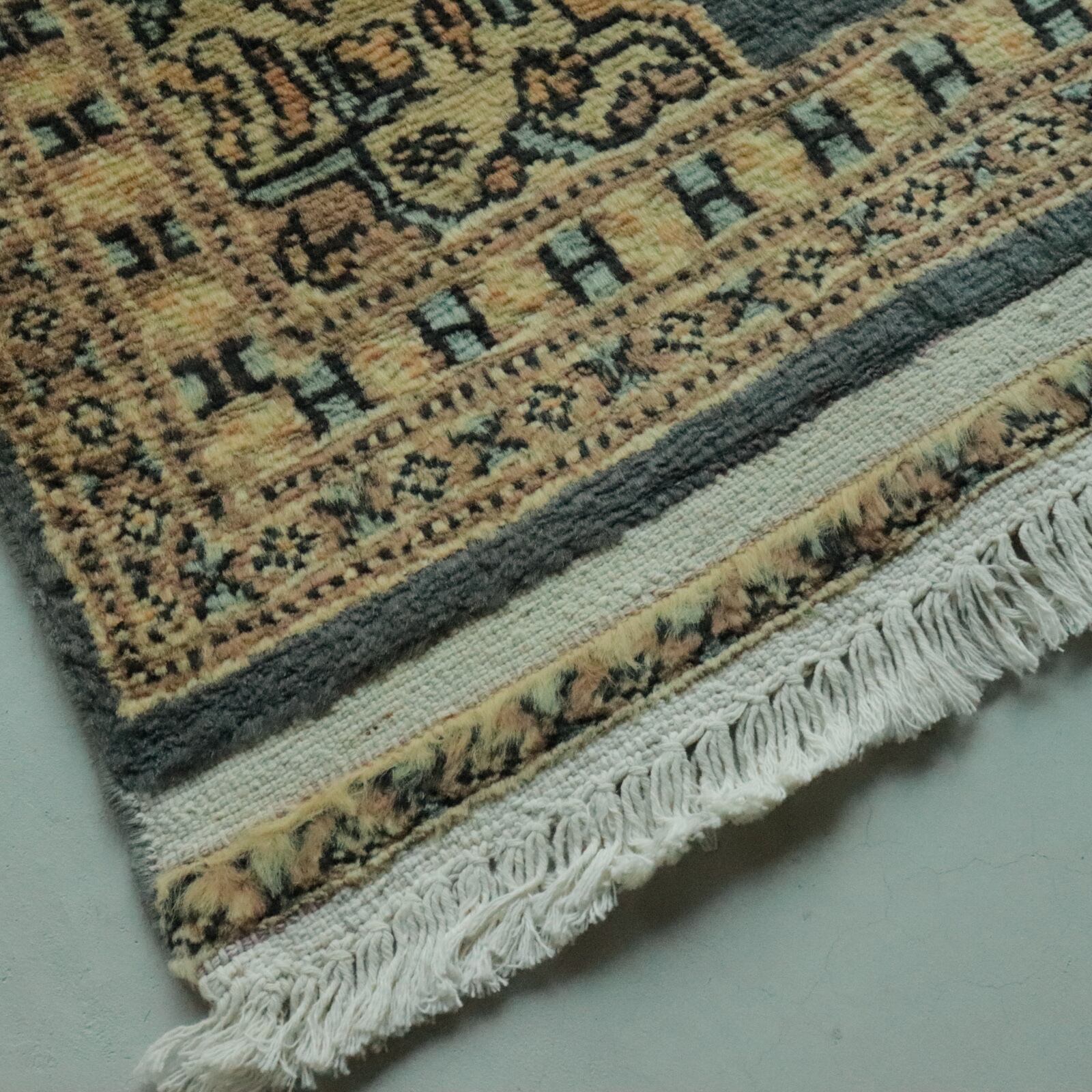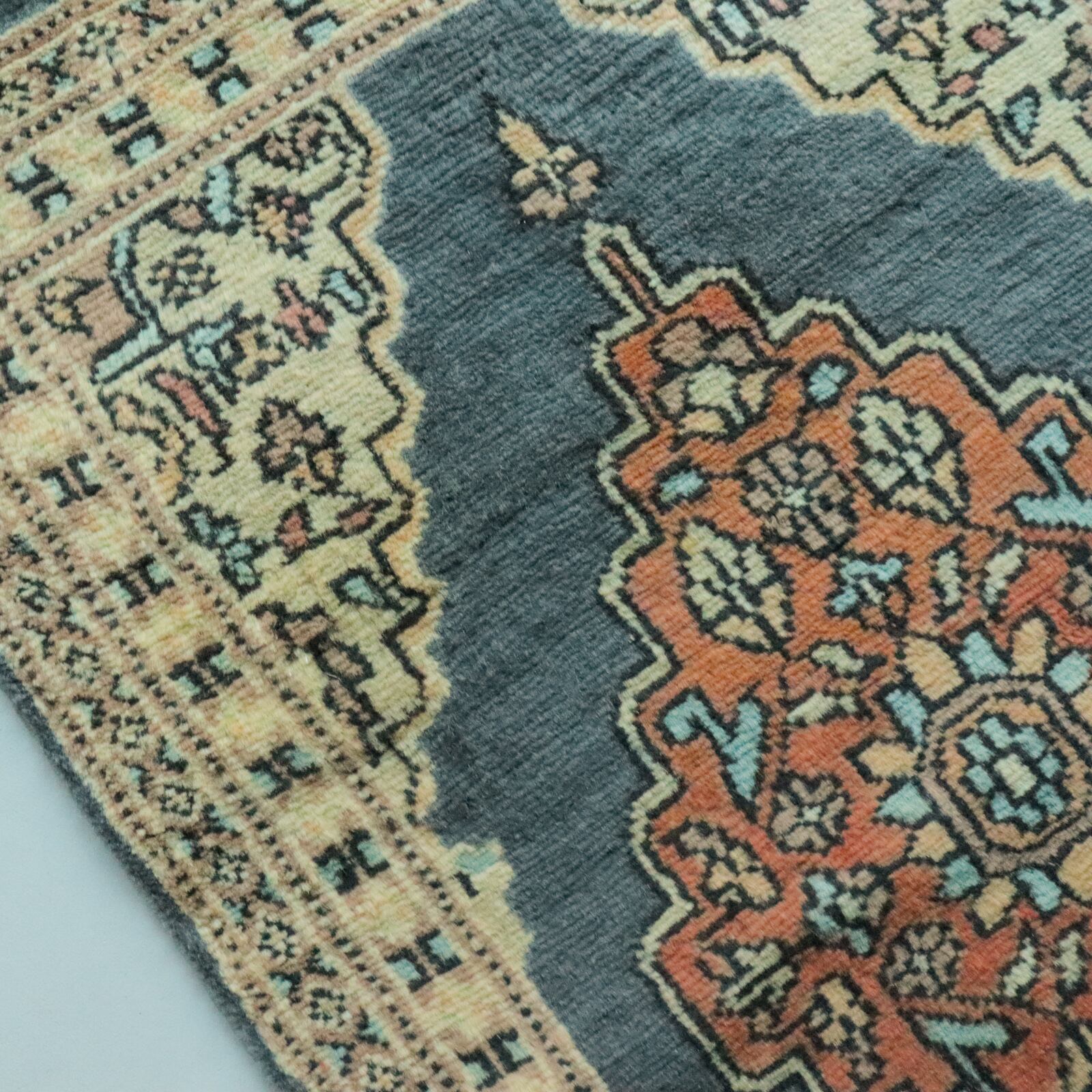 パキスタンのブルーグレー×オレンジのラグ