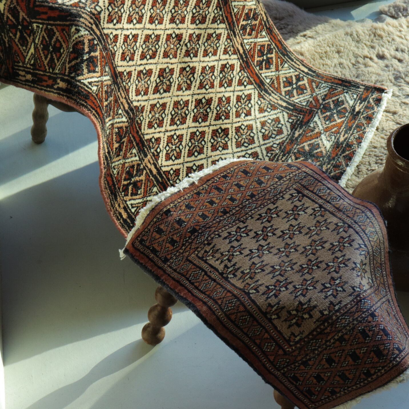 ・現地で洗浄済みのラグを販売しておりますが、稀に内部の繊維くずや埃などが取りきれていない商品もございます。(おおよそのラグは問題ございません)気になる方は到着後に掃除機がけまたは、クリーニングに出されることもご検討ください。