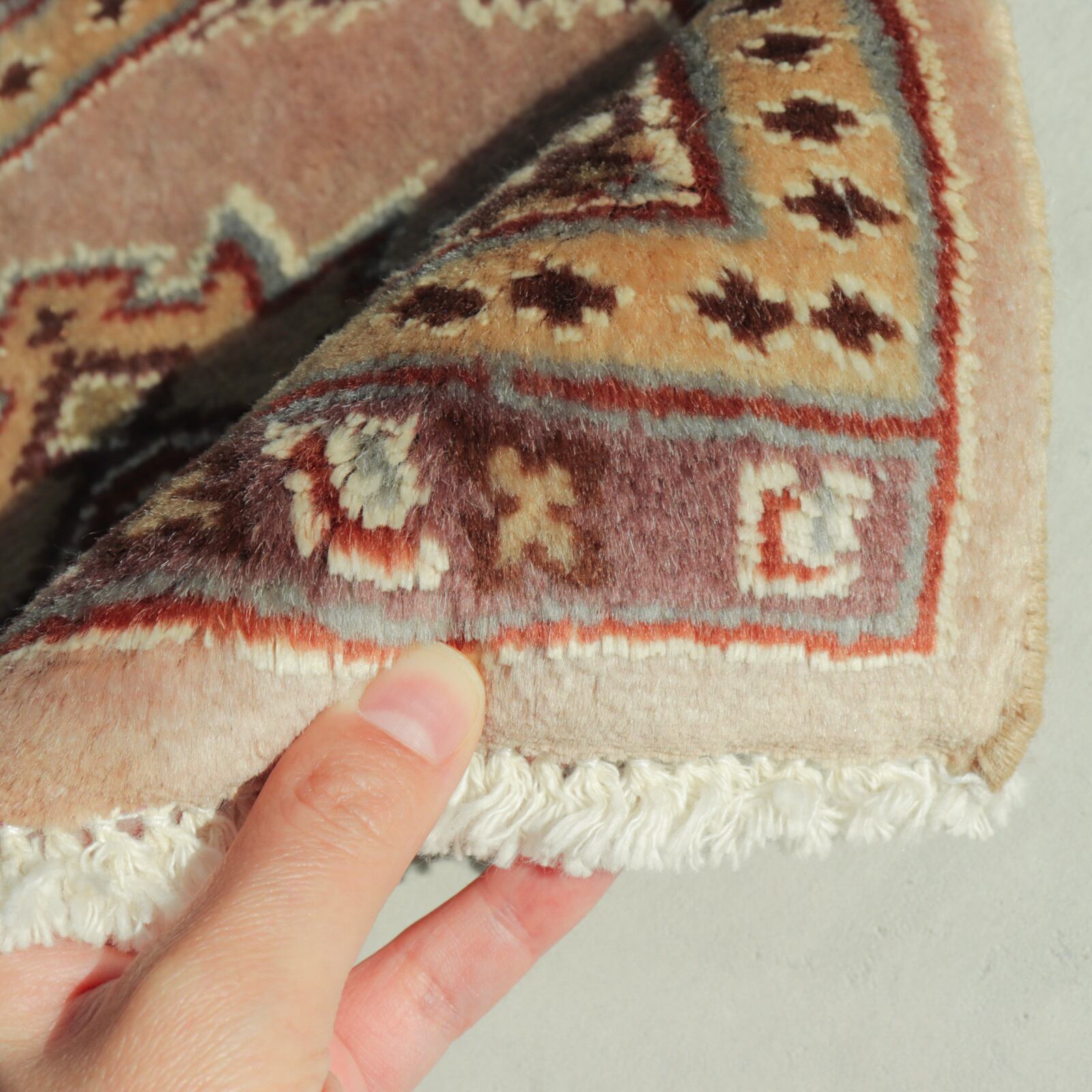 ・現地で洗浄済みのラグを販売しておりますが、稀に内部の繊維くずや埃などが取りきれていない商品もございます。(おおよそのラグは問題ございません)気になる方は到着後に掃除機がけまたは、クリーニングに出されることもご検討ください。