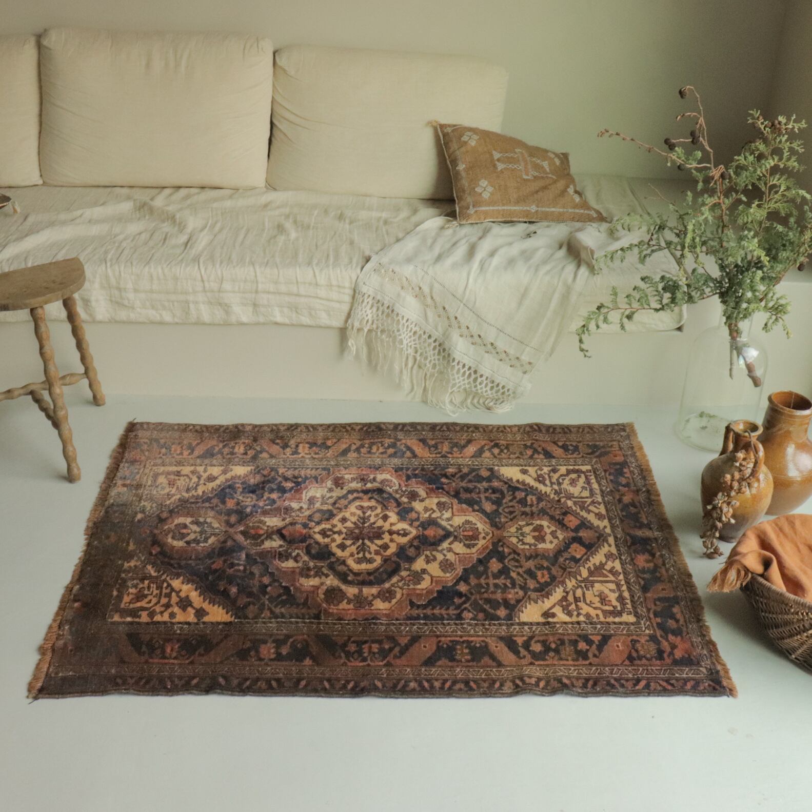 ・現地で洗浄済みのラグを販売しておりますが、稀に内部の繊維くずや埃などが取りきれていない商品もございます。(おおよそのラグは問題ございません)気になる方は到着後に掃除機がけまたは、クリーニングに出されることもご検討ください。